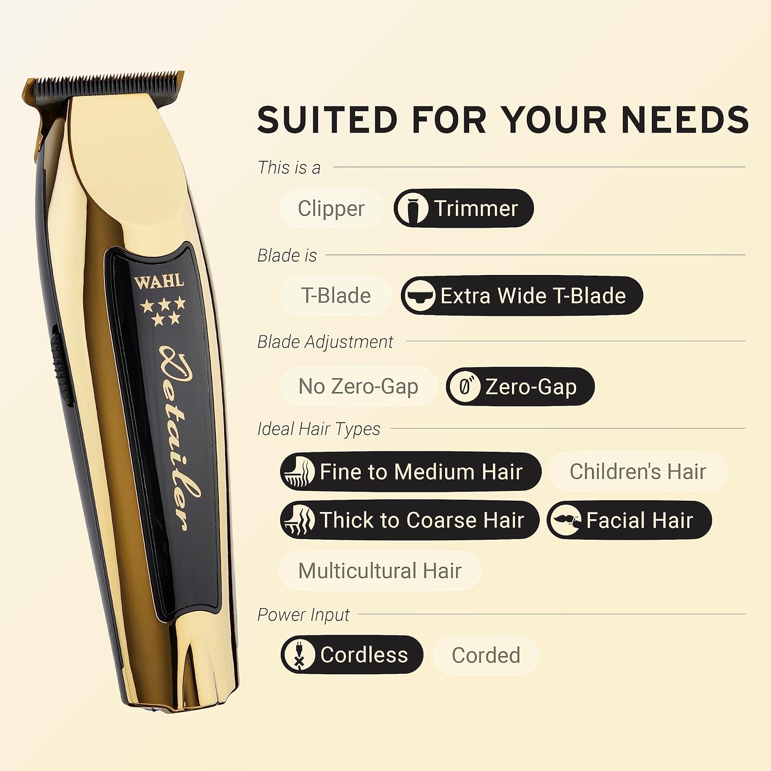 خط زن حرفه ایی با اندازه اصلاح پیش فرض ۰.۴ میلیمتر و دارای قابلیت Zero Over Lap ( باید تیغه باز شود و تیغه کوچک به سمت عقب کشیده شود تا اندازه اصلاح به صفر نزدیک شود )